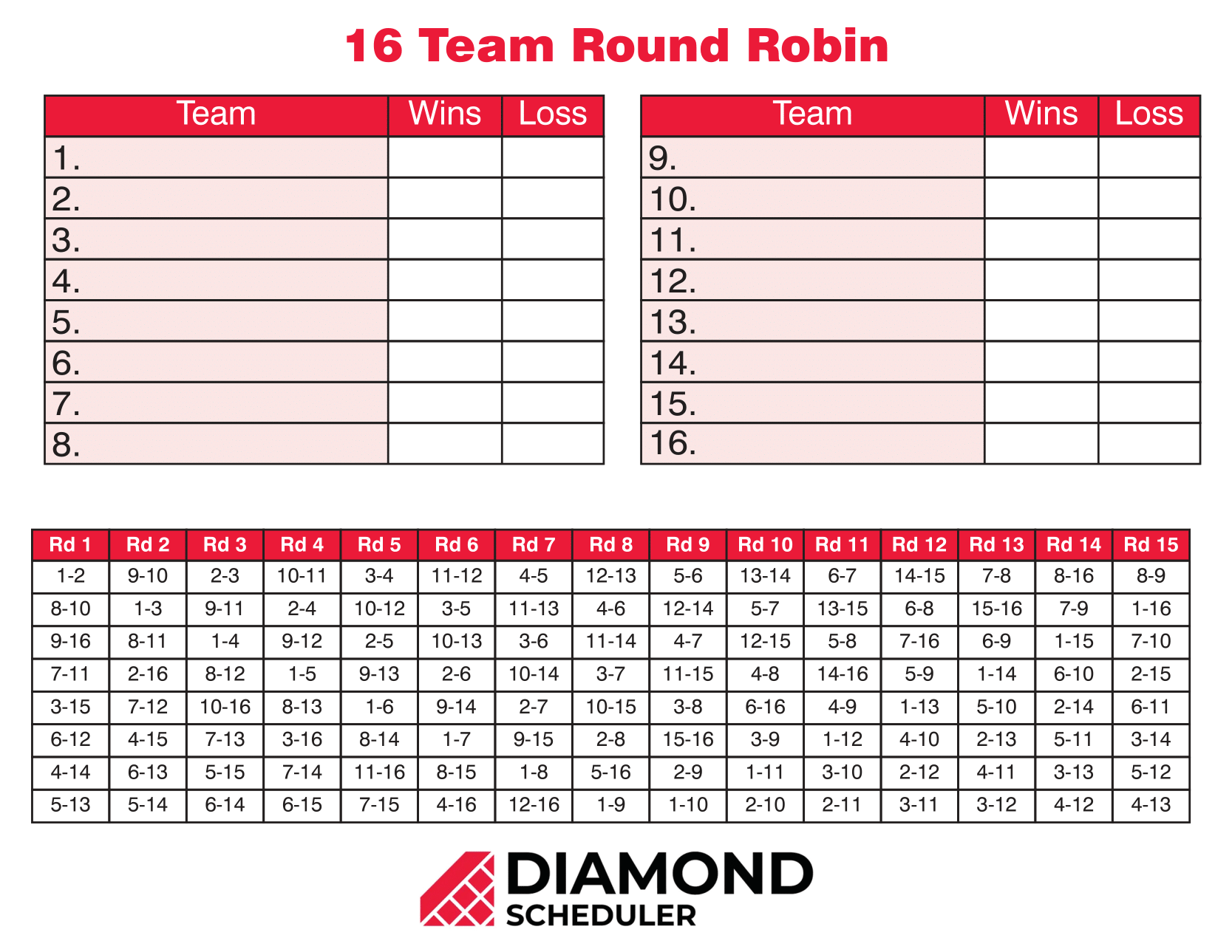 In a 16-team round robin tournament, every team faces every other participant exactly once. Points are awarded based on wins, draws, and losses. At the end, the participant with the most points is declared the winner. This format is great for ensuring everyone gets plenty of playtime and for determining a clear winner based on multiple games.
