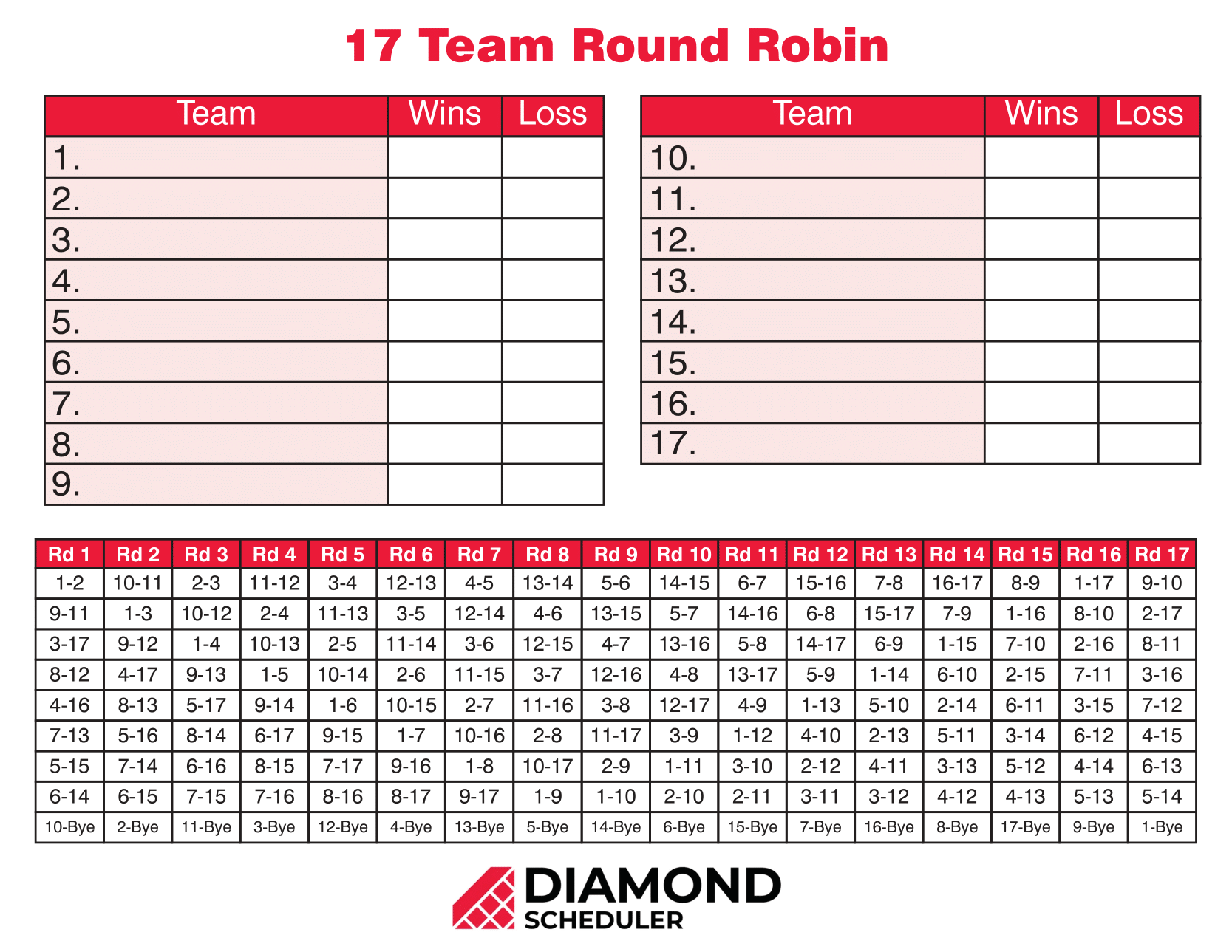 In a 17-team round robin tournament, every team faces every other participant exactly once. Points are awarded based on wins, draws, and losses. At the end, the participant with the most points is declared the winner. This format is great for ensuring everyone gets plenty of playtime and for determining a clear winner based on multiple games.