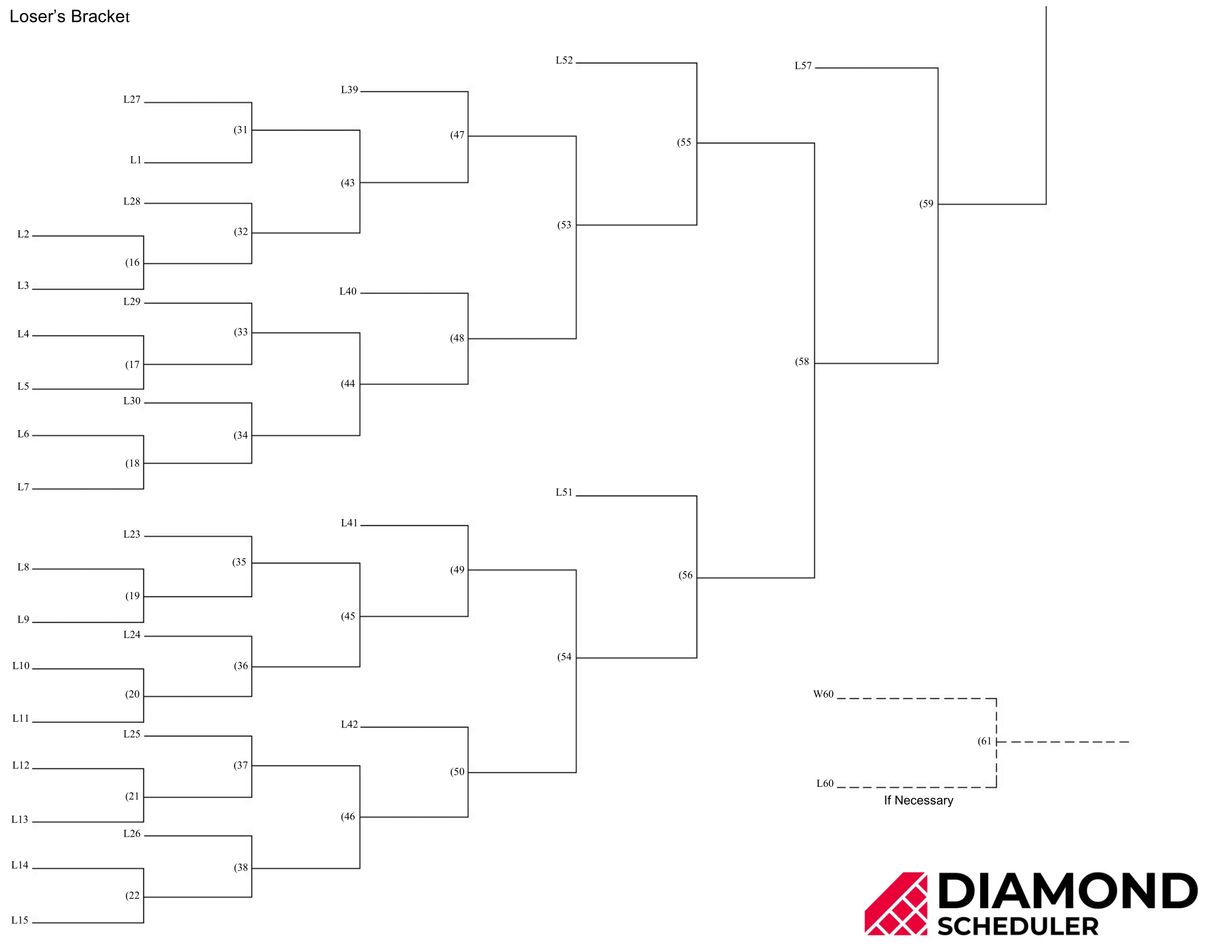 In a 31-team double-elimination tournament, participants have two lives, so to speak. If they lose a match, they're not immediately out; they move to a "loser's bracket." A second loss eliminates them from the tournament. This format allows participants a chance for redemption and makes the competition less susceptible to upsets.